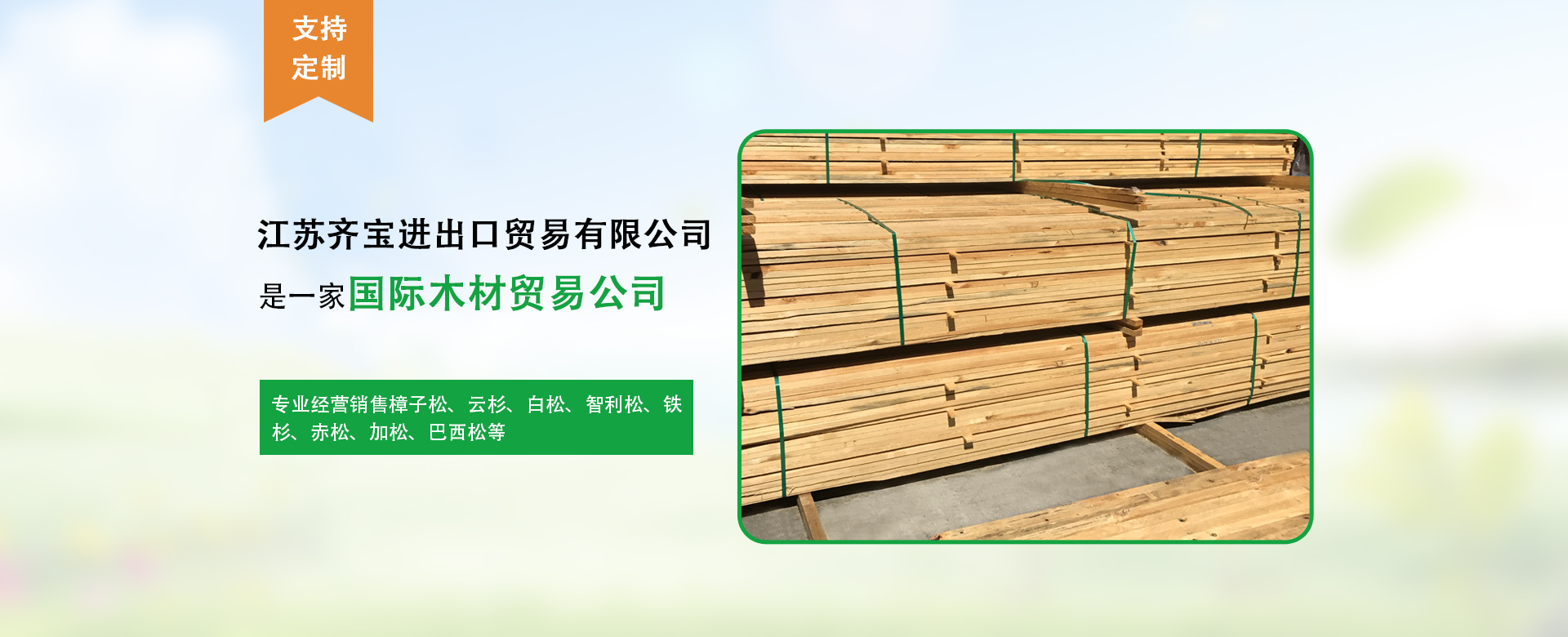江蘇齊寶進出口貿易有限公司是成立于2011年位于太倉港區的一家國際木材貿易公司,專業經營銷售樟子松,云杉,白松,智利松,鐵杉,赤松,加松,巴西松等,目前我公司進貨量約200000m3/年...